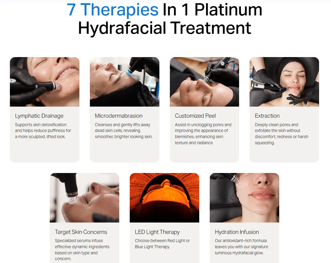Hydrafacial technology deeply cleanses, exfoliates, and hydrates the skin while removing impurities and infusing nourishing serums.